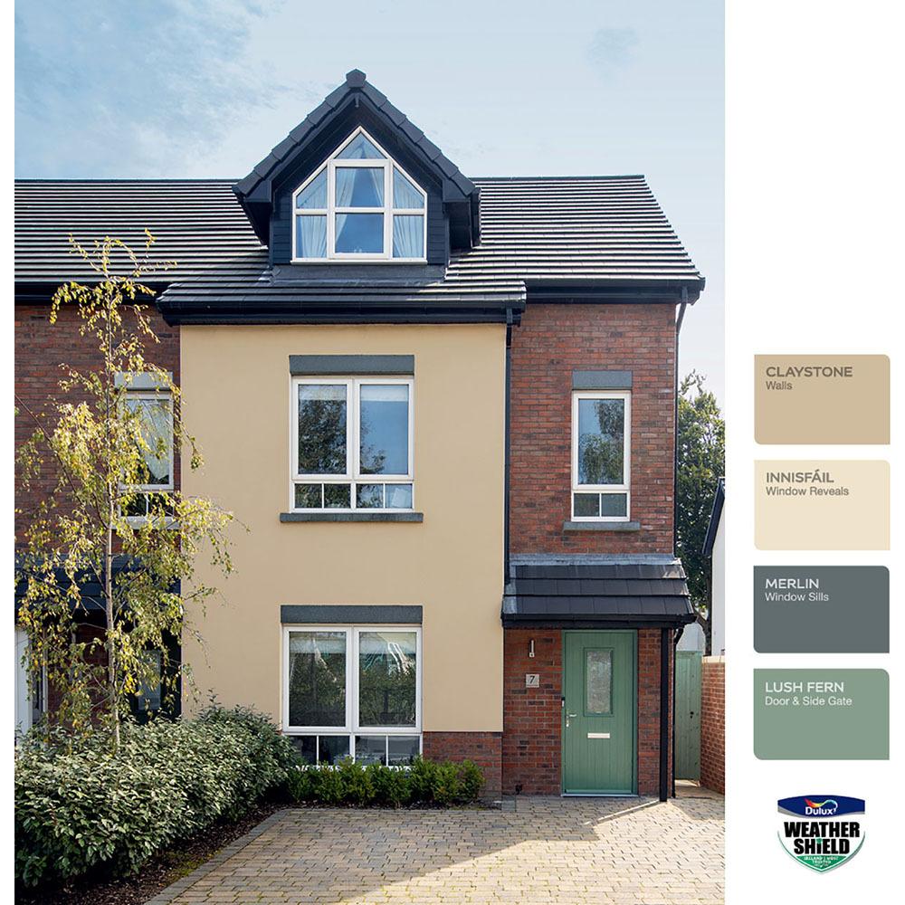 Dulux Weathershield Smooth Exterior Masonry paint is made in Ireland to protect Irish homes from our unique weather. The Ultimate Durability formula with Superior Flexibility protects the paint from cracking and flaking, while Superior Colour Retention ensures colours stay true and Superior Mould Resistance works against mould and algae growth for longer thanks to slow-release encapsulated biocide technology. Dulux Weathershield Ultimate Durability is our most durable exterior paint ever.
