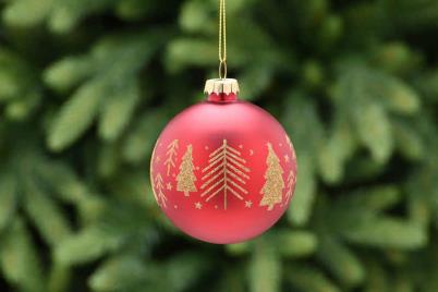 8cm Matt Red Glass Ball With Gold Trees
