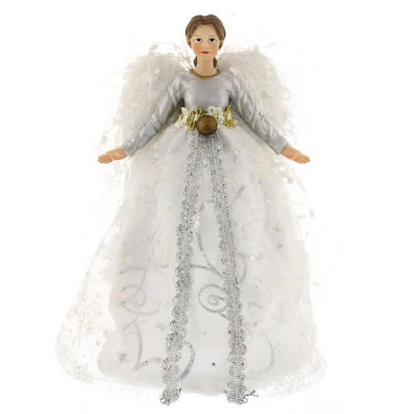 20cm Silver Angel Tree Topper - White Fl...