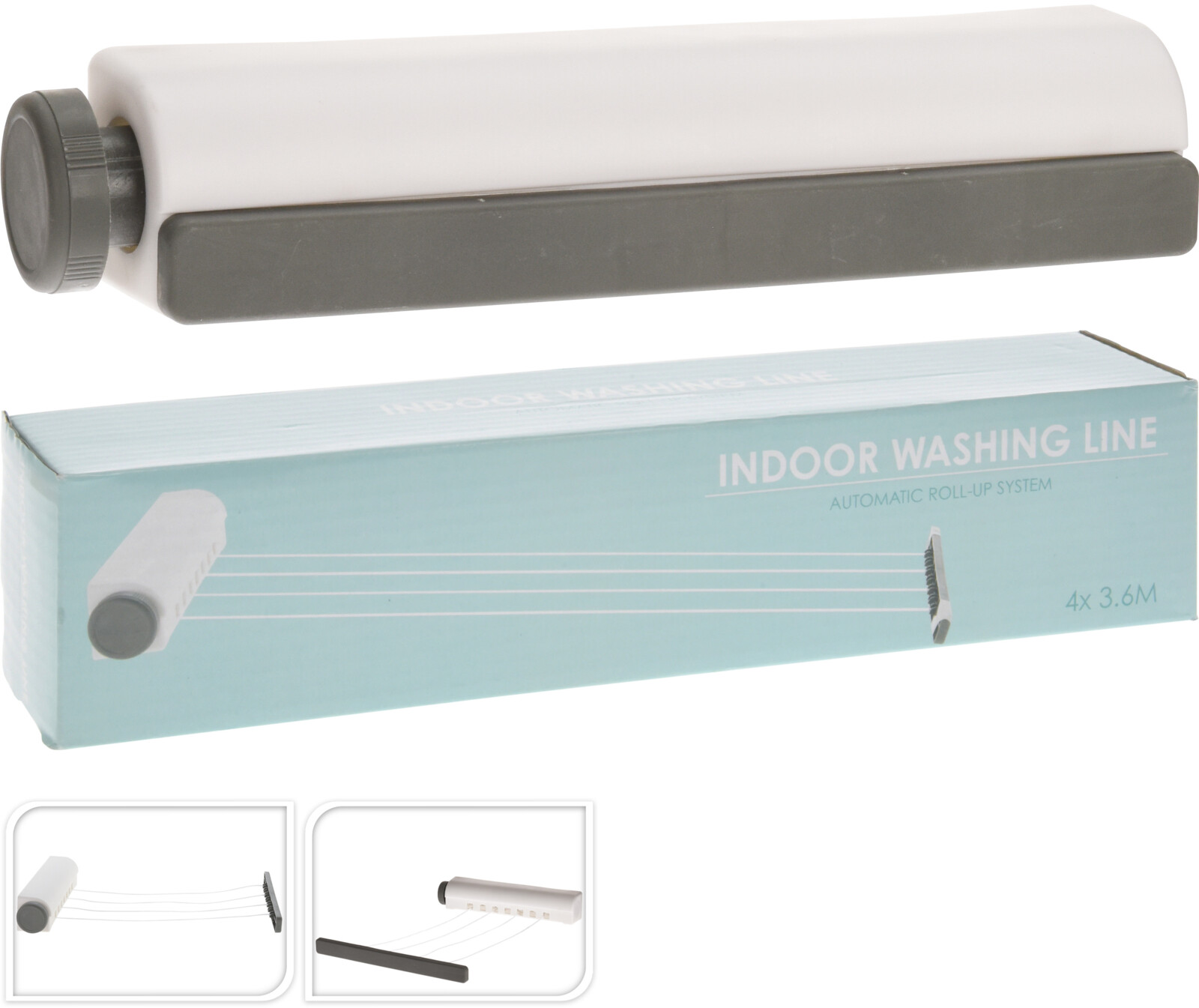 Clothes Line, Automatic, 4 Lines Of 3.6 Meter Each, In White Color. Line Holder With Grey Knob And Grey Pulling Part Including All Mounting Material, In Our Design Colorbox/ 300X60X62Mm, Color Box (Clb-C) / Cft 1,53,(37.021/40Ft Hq)