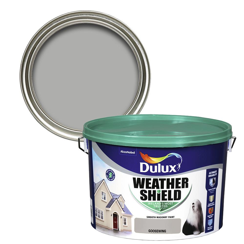 Dulux Weathershield Smooth Exterior Masonry paint is Made in Ireland to protect Irish homes from our unique weather. The Ultimate Durability formula with Superior Flexibility protects the paint from cracking and flaking, while Superior Colour Retention ensures colours stay true and Superior Mould Resistance works against mould and algae growth for longer thanks to slow-release encapsulated biocide technology. Dulux Weathershield Ultimate Durability is our most durable exterior paint ever. - Fast Shower Resistance - Protection against Cracking & Flaking - Superior Colour Retention Application Method: - Brush or Roller Base: - Water Cleaning: - Garden Brush or Hose Coverage: - 16m? per litre Disposal: - Check Local Recycling Centre Drying Time: - 2-4 hours These times will be significantly longer in cold, damp conditions Drying Time Recoating: - 2-4 hours These times will be significantly longer in cold, damp conditions Durability: - High Fade Resistant: - Yes Finishing Type: - Matt Manufacturing Warranty: - We promise our paint will give you the perfect colour with a uniform finish and the coverage stated, or we'll replace it. T&C's apply: dulux.ie/promise Number of Coats Required: - 2 Product Type: - Masonry Stain Resistant: - Yes Storage: - Keep in a dry/cool place standing upright Suitable Surface: - Masonry